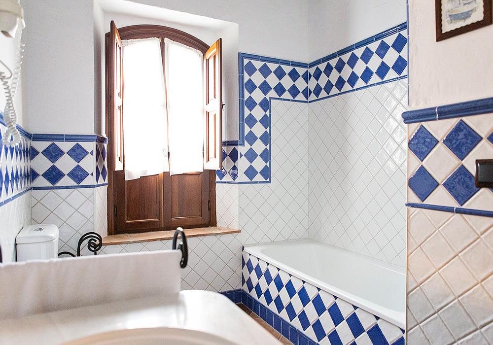 Estas habitaciones tienen el aliciente especial de que la bañera está equipada con un sistema hidromasaje. Las habitaciones cuentan con camas de matrimonio o 2 camas individuales. También incluyen una nevera y armario en la habitación. El mobiliario es funcional, de estilo rústico, los suelos son de baldosa y los techos de madera vista con vigas.